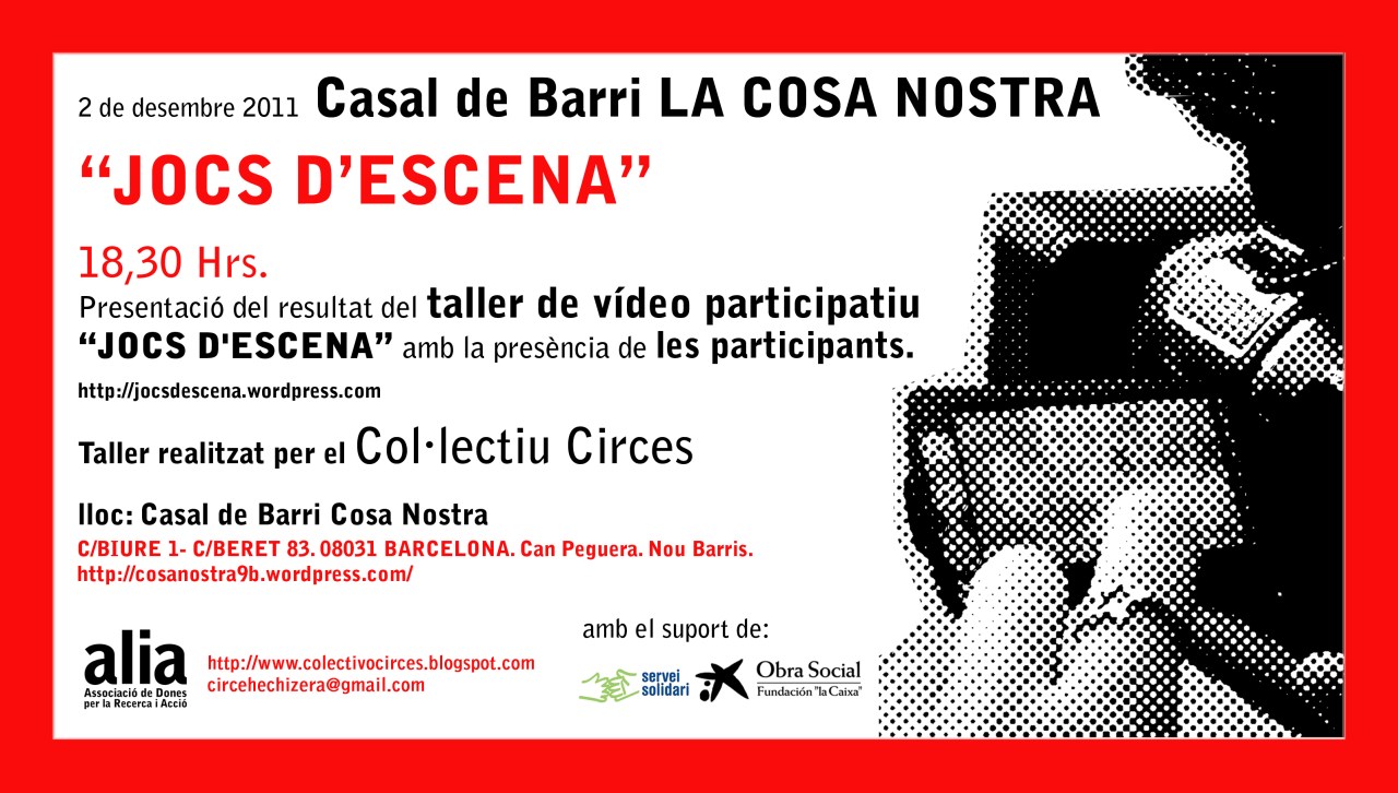 La proposta Consisteix en compartir els resultats del taller de vídeo participatiu Jocs d’escena / ficcions documentals, coordinat pel Col · lectiu Circes, que s’ha realitzat, amb joves dones de diferents orígens que, per diferents motius, s’ han hagut de separar molt aviat de les seves famílies. L’amistat i la separació afectiva són els temes centrals del curt de ficció Jocs d’escena, sentiments que travessen tant l’experiència de la migració com de la separació de l’entorn familiar d’origen de les joves.