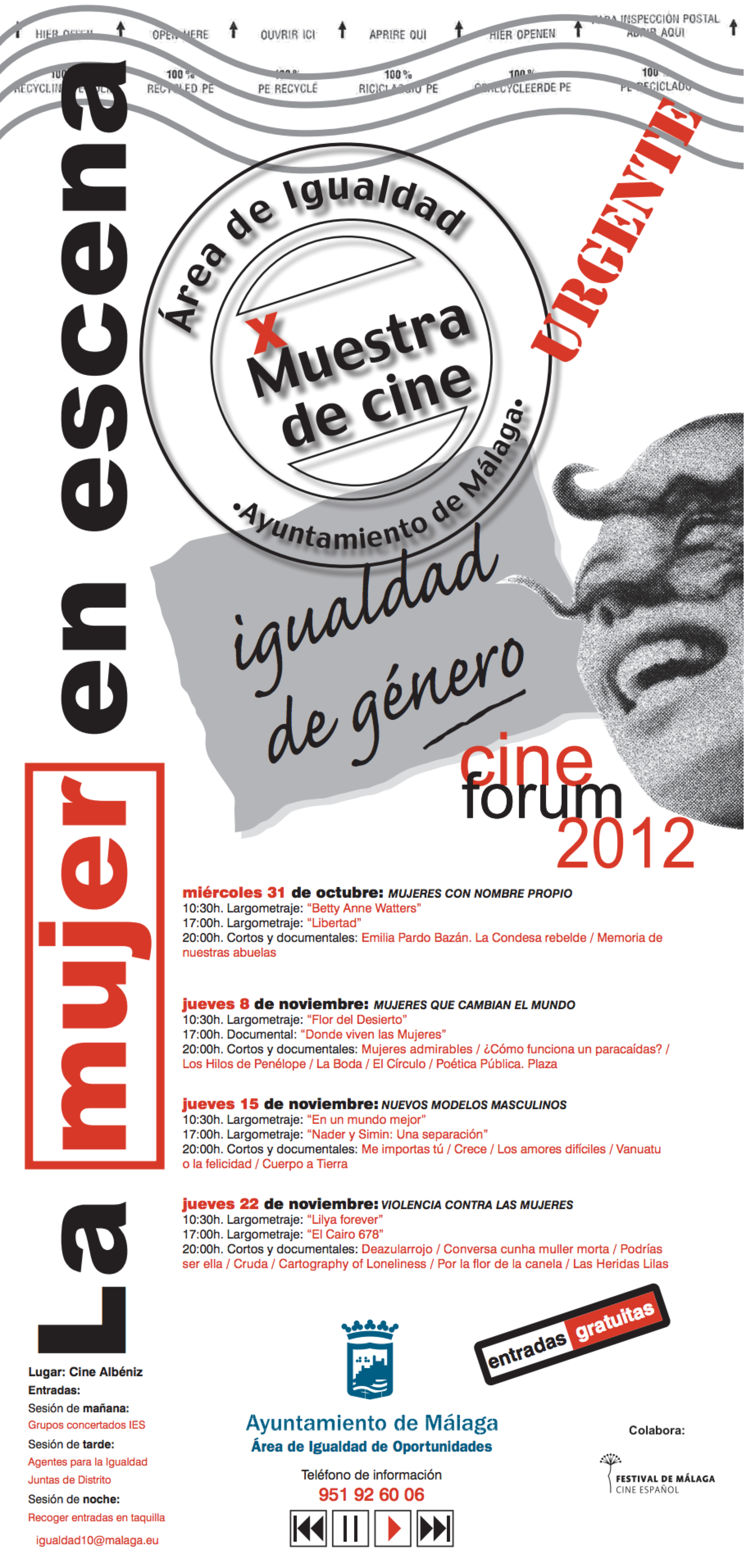 El documental LOS HILOS DE PENÉLOPE del Colectivo Circes viaja a Málaga. Se proyectará en la X Muestra de Cine sobre Igualdad de género «mujer en escena» que se celebrará el 31 de Octubre, y 8, 15 y 22 de Noviembre organizado por el Área ed Igualdad del Ayuntamiento de Málaga.