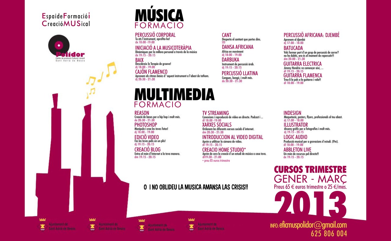 Hoy se abren las inscripciones a la Formación Musical i Multimedia en el espacio POLIDOR, Centro de producción Cultural y Juvenil de Sant Adrià de Besos.