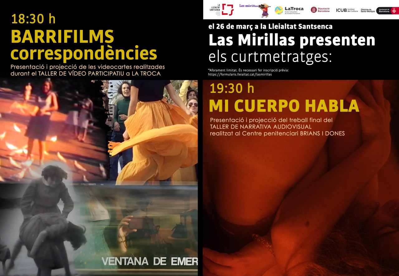 Las Mirillas, col.lectiu audiovisual per a la transformació social, presenta una sessió doble de curtmetratges de cinema participatiu realitzats als projectes «Barrifilms» amb la Troca de Sants i «Fem cine des de dins» amb dones del centre penitenciari Brians 1.