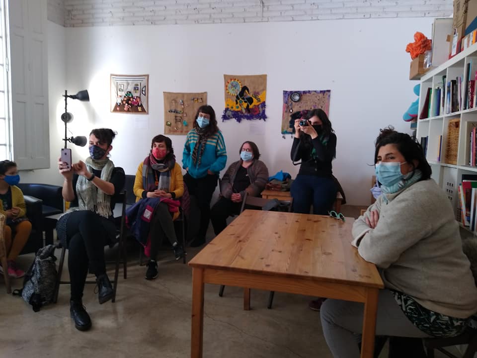 Cuando retomamos los encuentros presenciales, para muchas de nosotras las arpilleras que habíamos empezado eran algo lejano. Había desaparecido la centralidad de la relación que da la vida en grupo. Lo común entró en crisis. Estas arpilleras tienen sentido cuando se comparten, por eso se paralizaron en la soledad del encierro domiciliario. La esencia de nuestras dinámicas de creación pasa por la retroalimentación constante entre nosotras; las risas, las miradas, el estar, aunque sea sólo desde el gesto silencioso de bordar en compañía.