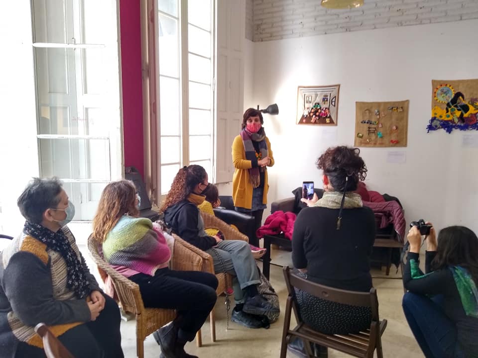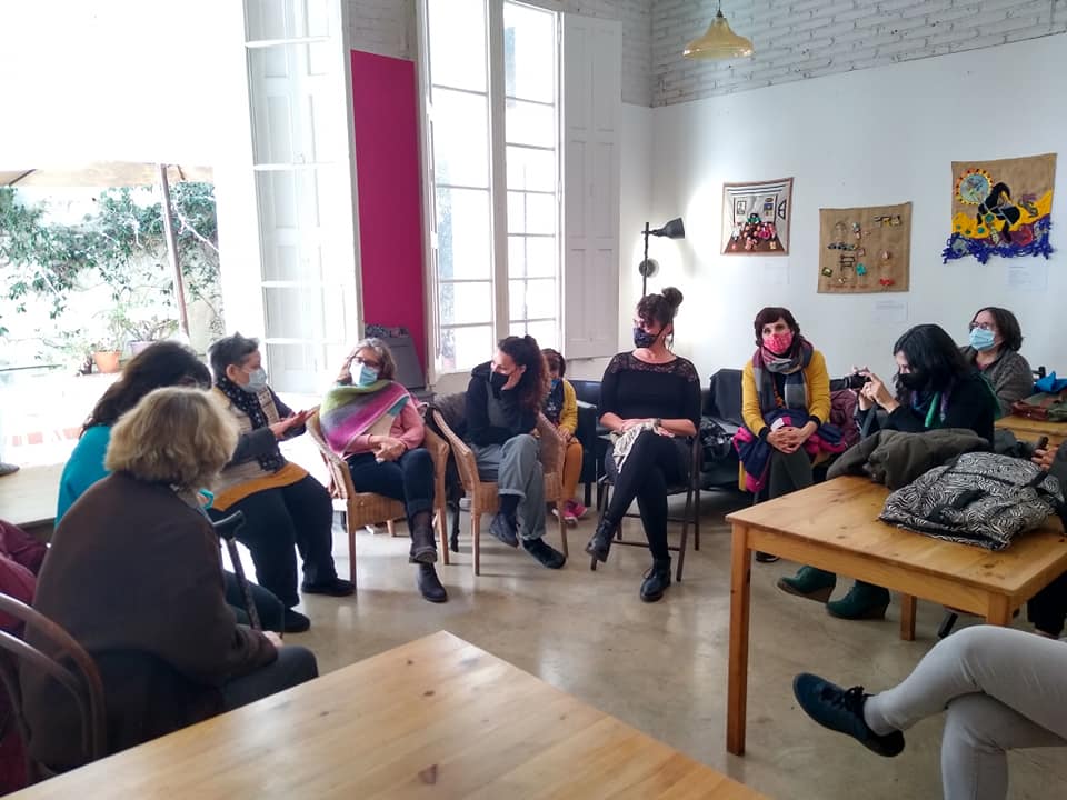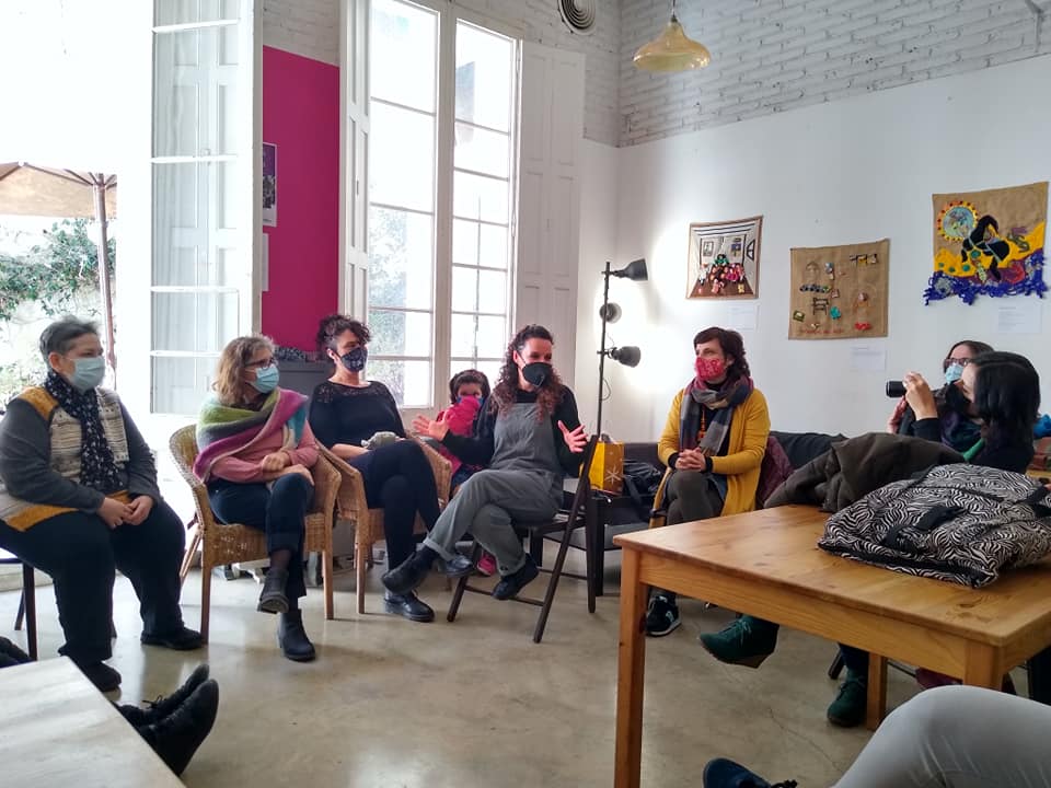 El grupo de mujeres Caminantes, Apilleristas del Poble-sec está dinamizado por el Pla Comunitari de Poble-sec, la artista téxtil Karen Rosentreter y Raquel García de Alia, Associació de dones per la recerca i acció.