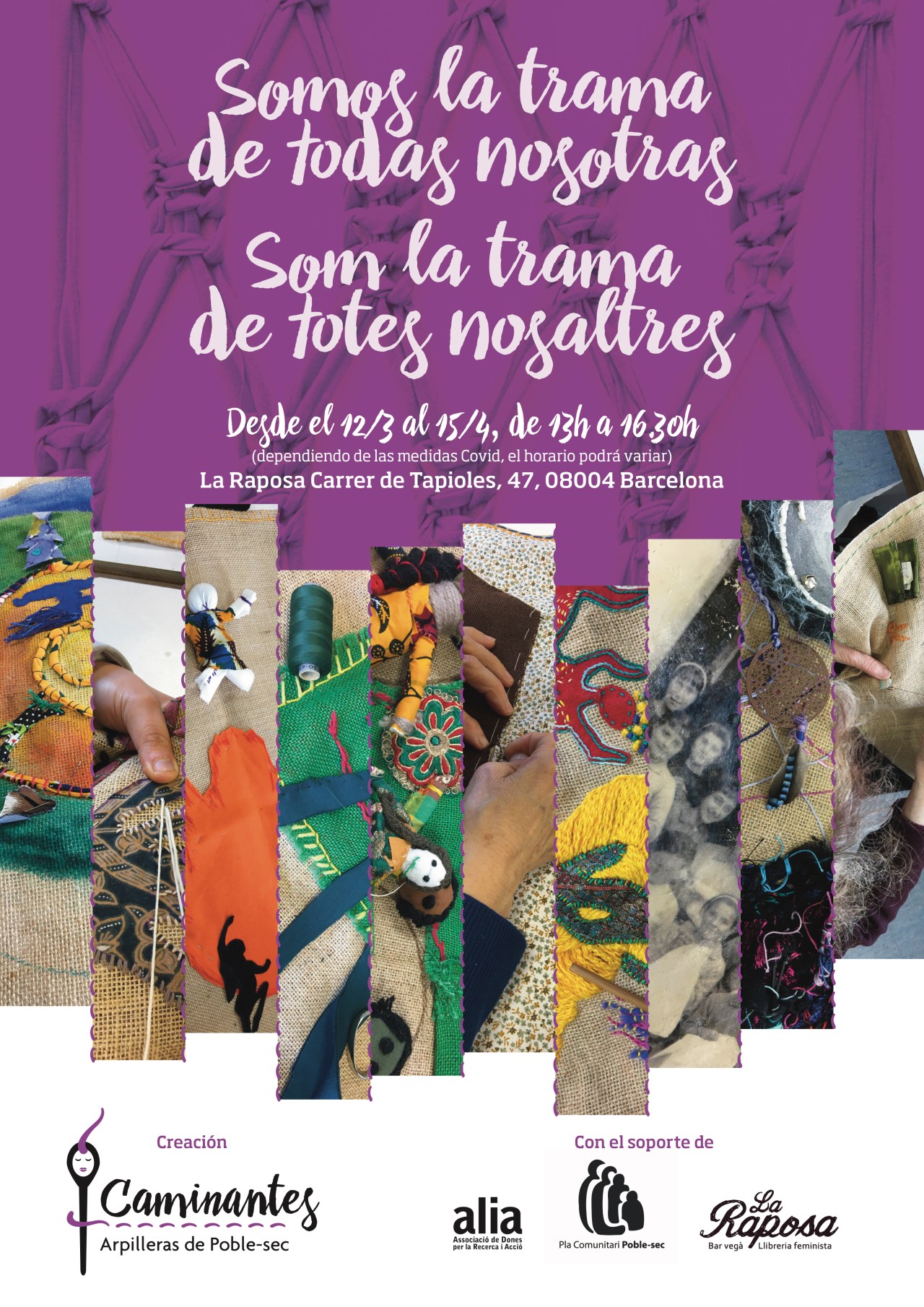 El grupo de mujeres Caminantes, Apilleristas del Poble-sec está dinamizado por el Pla Comunitari de Poble-sec, la artista téxtil Karen Rosentreter y Raquel García de Alia, Associació de dones per la recerca i acció.